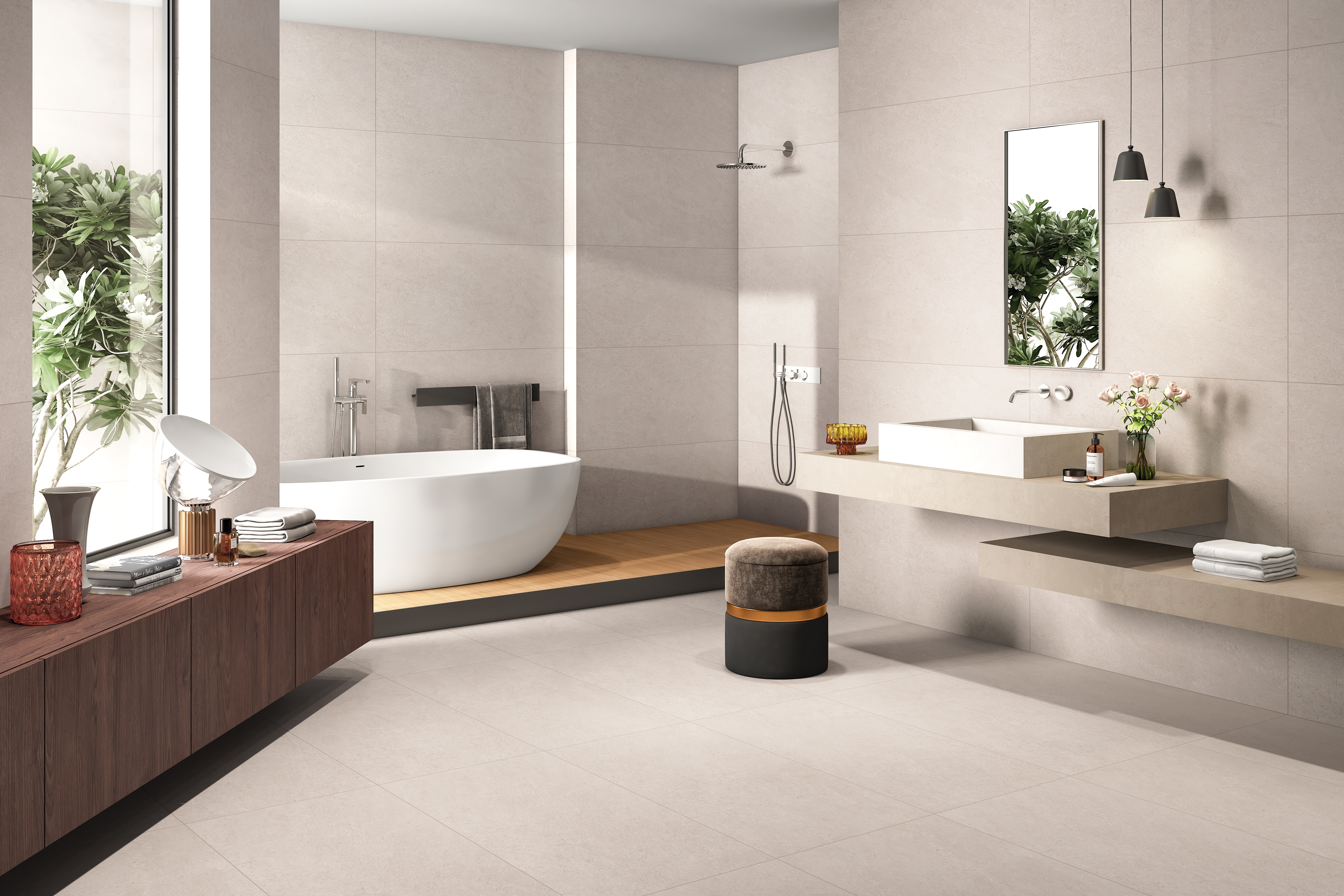 Disainivalik on lai: marmori-, kivi- ja betooniefektid, samuti minimalistlikud ühetoonilised variandid, mida pakutakse nii mati, poleeritud kui ka kõrgläikega pinnana. Tänu sellele saab neid kasutada väga erinevates stiilides, alates luksuslikust ja elegantsest kuni industriaalsete ja looduslähedaste lahendusteni. Plaadid on sirge servaga (rectified), mis võimaldab paigaldada neid väikese vuugiga ja saavutada eriti puhta tulemuse.