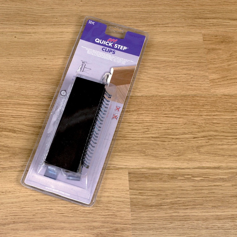 Quick‑Step’i kinnitusklambrid hoiavad standardseid põrandaliiste kindlalt paigal ilma kruvide või liimita. Klambrid paigaldatakse samaaegselt põrandaga, asetades ühe klambri iga 40 cm järel mööda seina. Seejärel saab liistu lihtsalt klambrite külge klõpsata. Klambrid ei sobi 12 mm paksustele põrandatele.